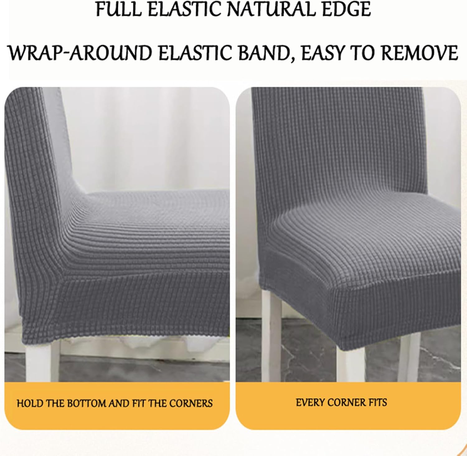 They are extremely elastic and can recover quickly after stretching, making them suitable for all seasons.A variety of colors for you to choose to meet different home styles.Our Chair Cover Slipcover Can be used in dining rooms, hotels, weddings, banquets, conferences, celebrations, offices, bars, cafes, kitchens and restaurants.Applicable size:Chair back height: 45-55CMSeat depth: 38-45CMSeat width: 38-45CMPlease compare the size chart to determine if this chair cover is suitable for the chairs in your home.Package Contents:6 x Dining Chair CoversTips:About the colourDue to the different monitors and lighting, the colour of the chair cover will have slight differences, which is normal.About the sizeIt is normal for chair cover to be hand-cut and may have a deviation of 1~3cm