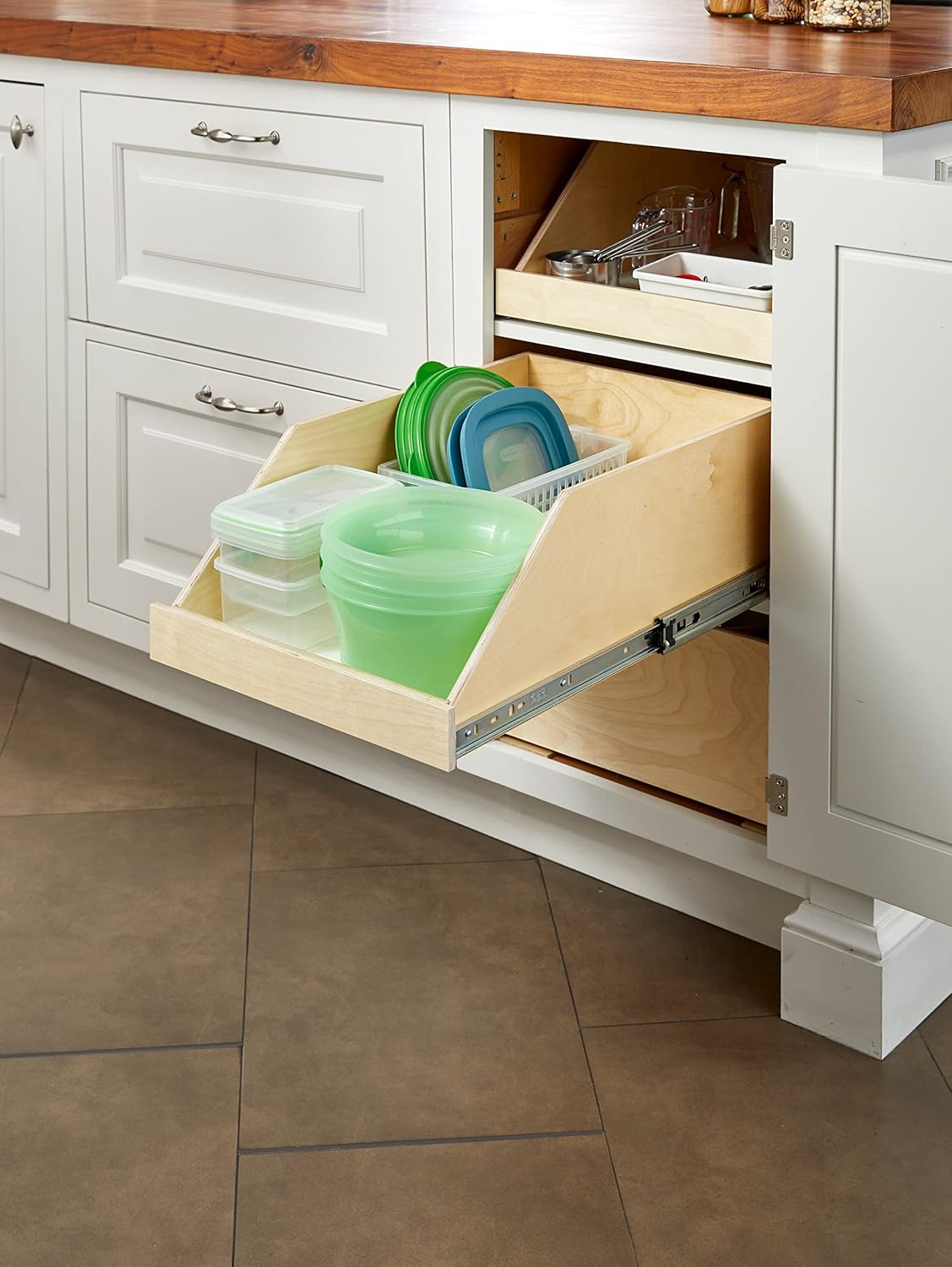 Maximize Your Storage with Our 8-Inch High Side Slide-Out Shelf! Looking for more secure storage in your cabinets? Our 8-Inch High Side Slide-Out Shelf is the perfect slide-out solution, offering higher sides to keep items contained and organized. It's ideal for any room, including kitchens, pantries, bathrooms, laundry rooms, and linen closets. Custom Fit & Easy Installation This unit is custom-made to your cabinet's clear opening width and interior depth and height, ensuring a perfect fit. Installation is a breeze – it mounts to your cabinet base or existing full shelf in minutes with just a screwdriver or drill. We even include a rigid Install Template for a quick and easy DIY setup! Durable Design & Quality Construction Our 8-Inch High Slide Slide-Out Shelf features full-extension steel ball-bearing rails rated for 100 lbs., providing smooth and reliable operation. Crafted with the same high-quality wood used in custom cabinetry, this unit is built to last. Choose from four cosmetic wood fronts to complement your cabinets and/or decor. (Oak, Maple, Poplar, Birch) You will be thrilled with the durable easy-to-clean shelf base and tapered, wrap-around 9-ply birch sides. They are the industry's tallest for a standard shelf and have a tough UV-cured polyurethane finish. Crucial: Measure for a Perfect Fit! Please do not guess your measurements! To ensure your custom slide-out fits perfectly, it's very important to follow these steps before placing your order: 1. Review our 3 Measuring Guides located in the product images. 2. Watch our video tutorial, "The Measuring Process." Our organizers are custom-made to your exact clear cabinet opening width and unobstructed internal depth and height measurements. Cabinets can be constructed in many ways and use different hinges/hardware, all of which can impact your measurements. Once installed, your slide-out shelf will have an approximate 1/4-inch clearance on each side for a flawless fit.